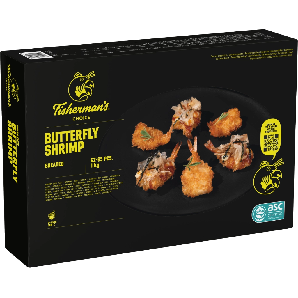 De Fisherman's Choice Breaded Butterfly product in olie bij 180 °C ongeveer 3-5 minuten frituren tot het een goudgele kleur heeft.